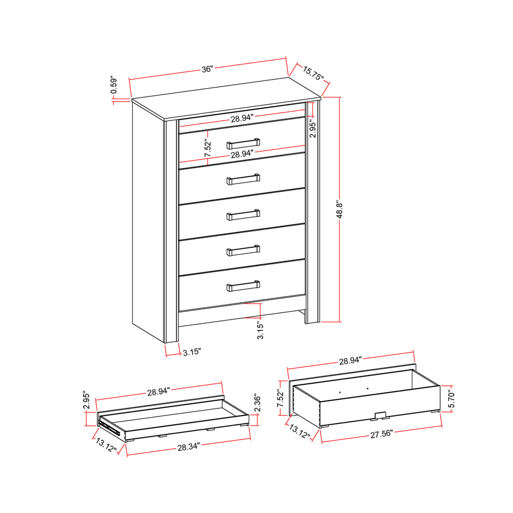 • 5-Piece Set: Includes bed, dresser with mirror, chest, and nightstand for complete bedroom furnishing.