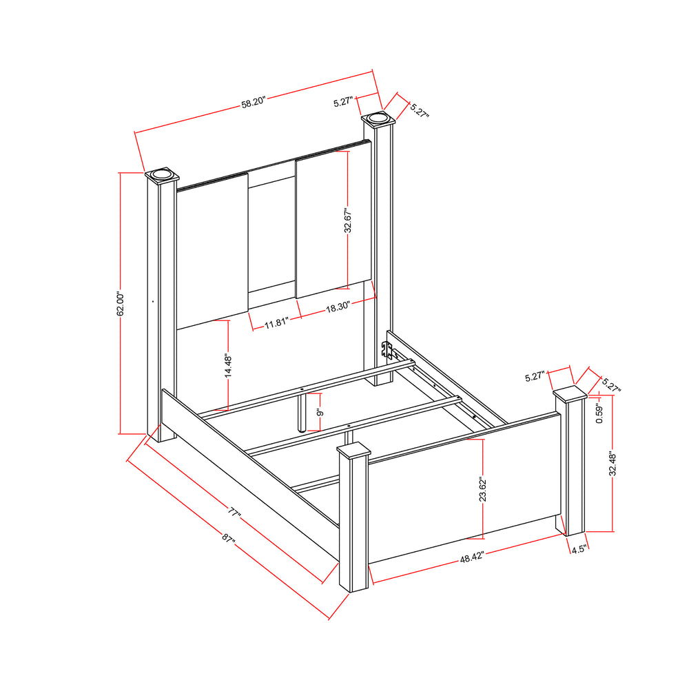 • Assembled Dimensions: Bed measures approximately 87 inches long, 58 inches wide, and 62 inches high for a comfortable queen fit.