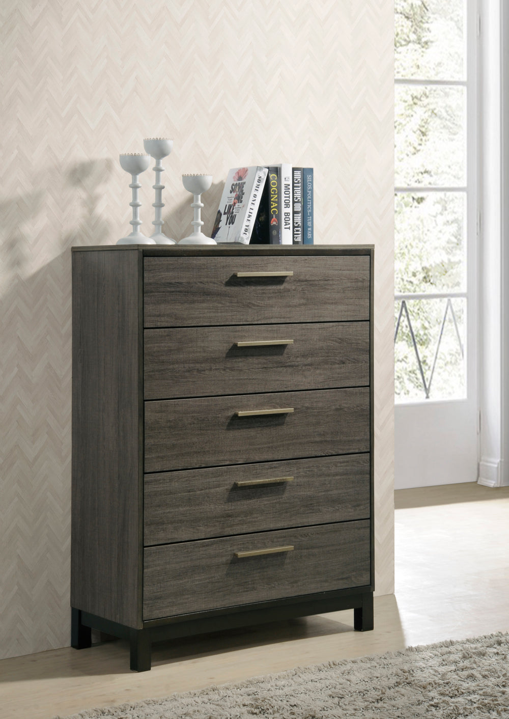 - Weathered Gray Finish: Enhances wood grain with a subtle contemporary touch