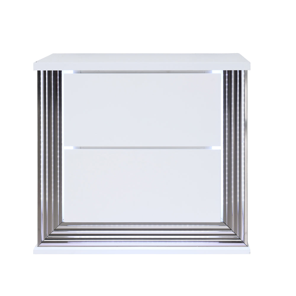 Transform your bedroom into a serene sanctuary with this stunning 5-piece bedroom set featuring a smooth white finish and sophisticated marble highlights. Crafted from solid wood and MDF for lasting durability, this contemporary set includes a queen-size bed with built-in LED accent lighting that adds a warm, inviting glow to your space. The included chest, dresser with mirror, and nightstand offer abundant storage with spacious drawers, helping you keep your bedroom organized and clutter-free. Designed with clean lines and modern style, this set perfectly balances function and fashion to refresh your home’s ambiance. The bed’s sturdy 4-slat foundation requires a box spring for optimal mattress support. Elevate your bedroom aesthetics and comfort today with this versatile and stylish set.