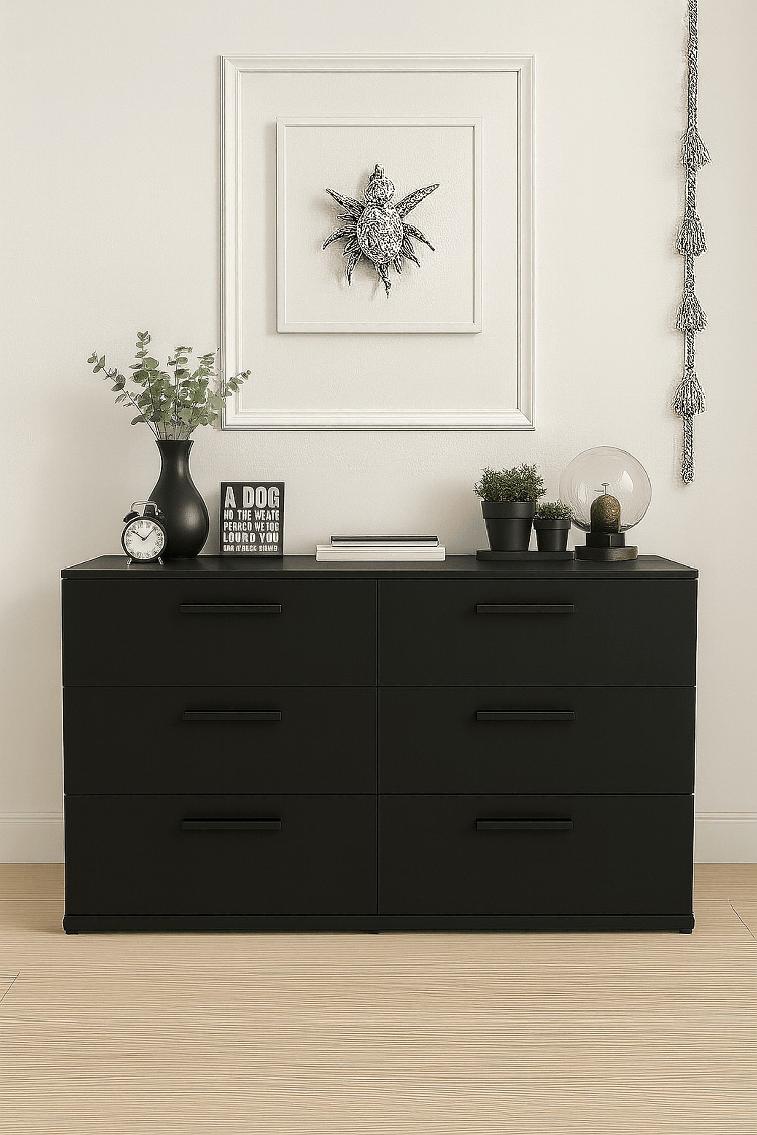 The Morgan Chest offers a contemporary storage solution designed to adapt and grow with your needs. Crafted from high-quality wood with a sleek black finish, this modular chest features jumbo-sized deep drawers that provide ample space to organize your essentials neatly. Its innovative modular design allows you to connect multiple units seamlessly, expanding from a compact 3-drawer chest to a larger 6- or 9-drawer dresser, making it perfect for evolving storage demands. Engineered for durability, the Morgan Chest boasts water and heat resistance alongside 2x thicker edgebanding for enhanced longevity. With easy assembly and a sturdy build weighing approximately 114 pounds, this versatile furniture piece blends style and function effortlessly. Elevate your home organization with this durable and expandable storage chest today.