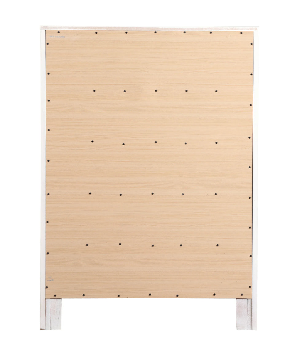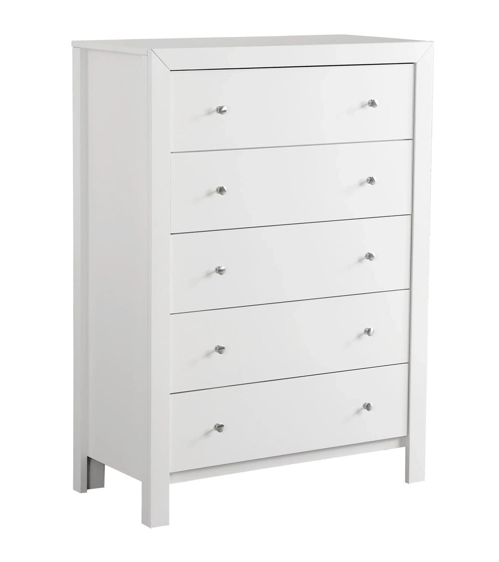 White Five-Drawer Wood Veneer Bedroom Chest