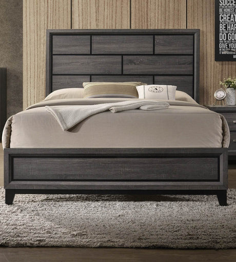 Queen Size Rustic Gray Panel Bed Frame Wood Furniture