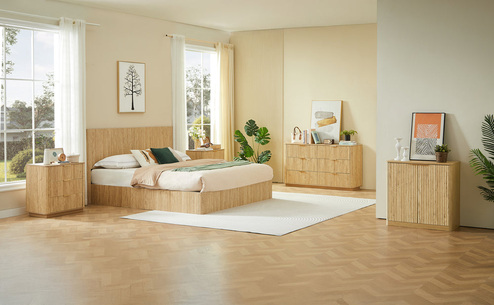 • Graceful curved wood adds warmth and timeless charm to bedrooms