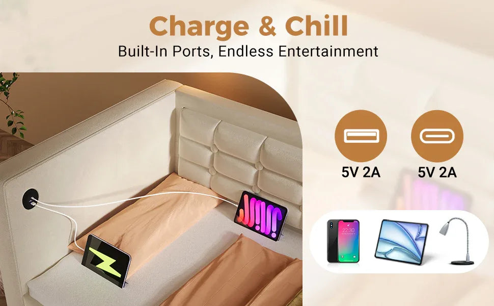 • Integrated USB & Type-C Charging: Conveniently charge devices bedside.
