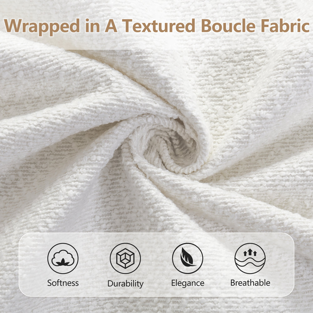 - Soft Boucle Fabric Upholstery: Adds cozy comfort and sophisticated texture.