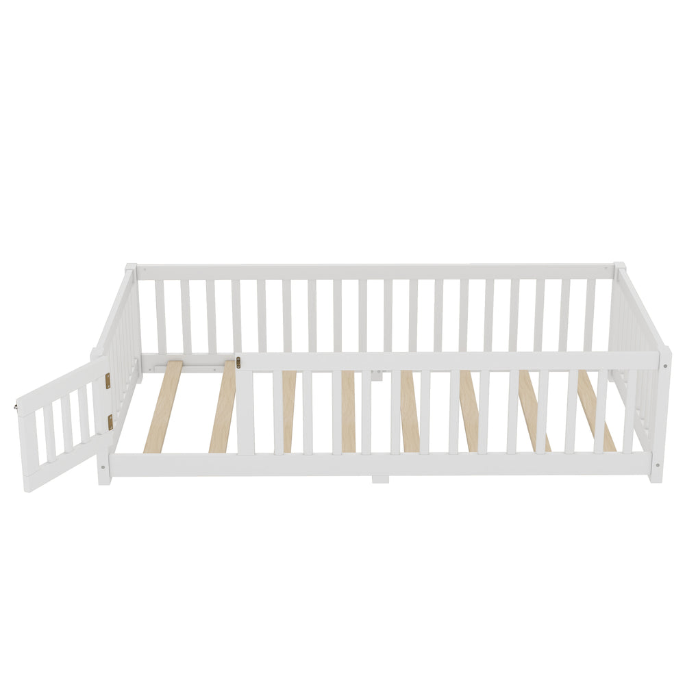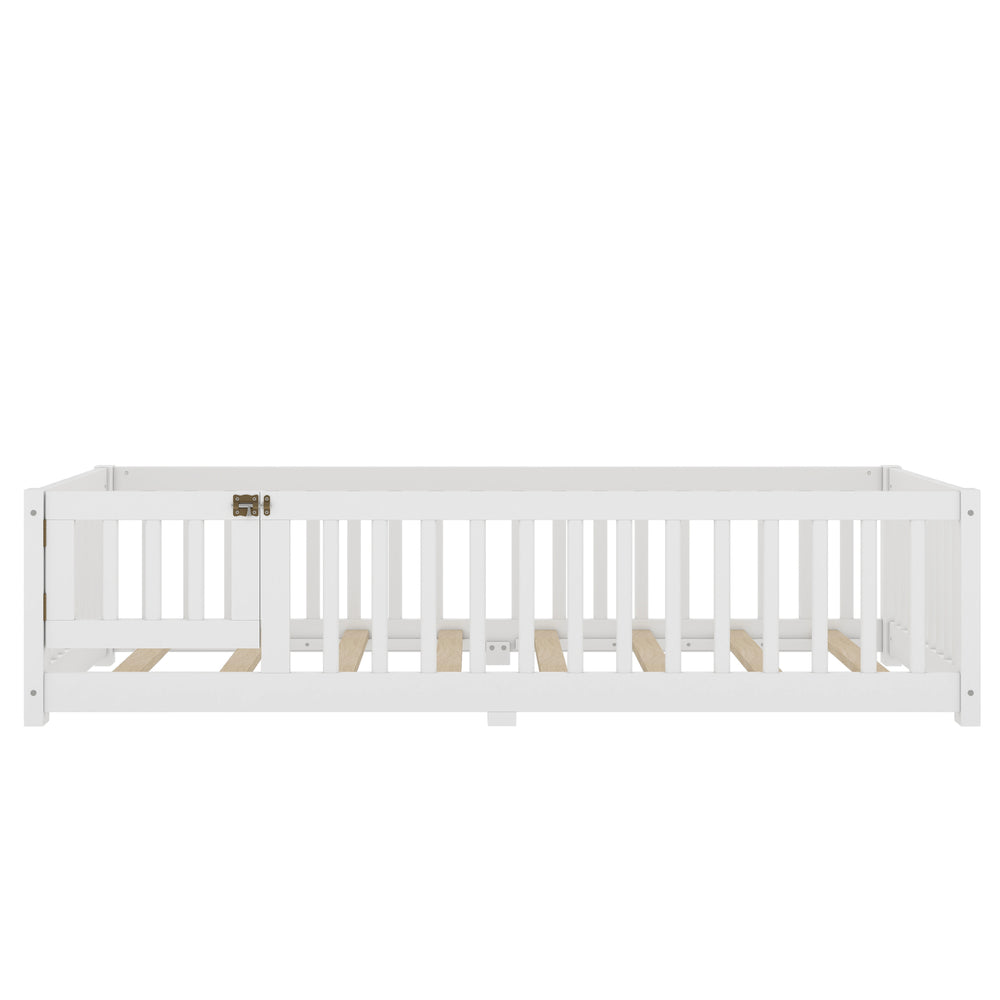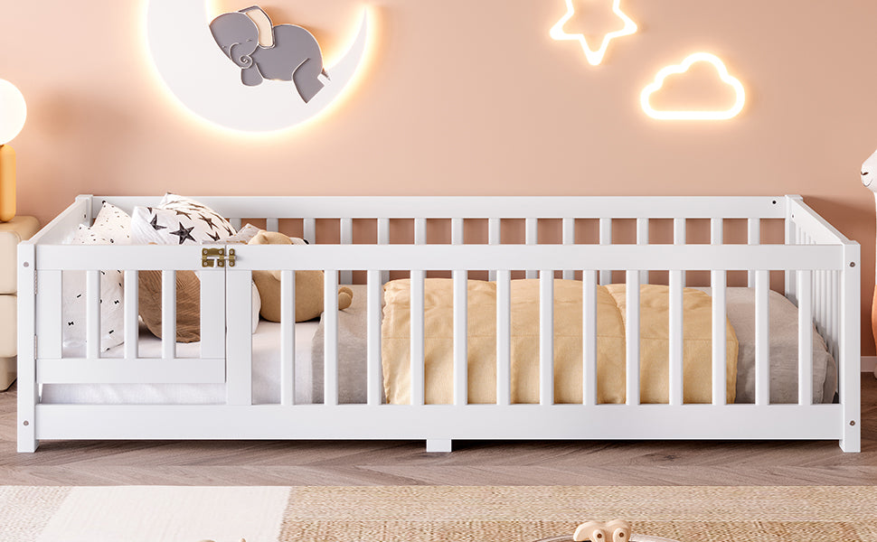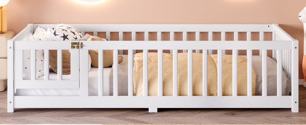 Safe and Stylish Twin Floor Bed for Kids with Guardrails and Door