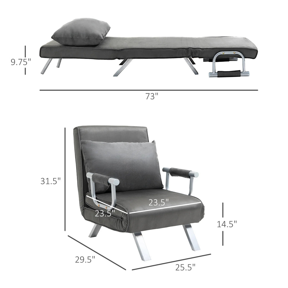 Maximize your living space with this multifunctional dark grey folding sofa bed, perfect for small apartments, guest rooms, or cozy lounges. The sleek, modern design features a durable powder-coated steel frame and soft fabric upholstery for lasting comfort. Adjust the backrest through five recline positions to find your ideal seating angle—from upright chair to laid-back chaise lounge or fully flat sleeper. The medium-density foam cushioning and removable accent pillow add plush support and easy maintenance. At just 73 inches long, 23.5 inches wide, and under 10 inches tall when folded, this comfy sofa chair adapts effortlessly to your day-to-day needs. Elevate your home relaxation today with this space-saving, convertible seating solution.