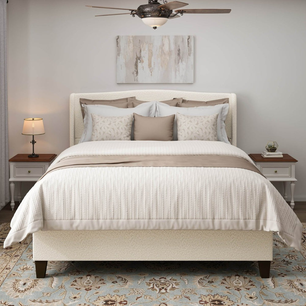 • 49.21-inch-high upholstered headboard offers padded comfort and stylish design