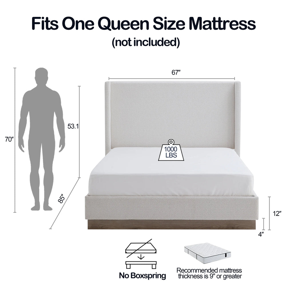 Queen Upholstered Wingback Bed Frame With Boucle Fabric