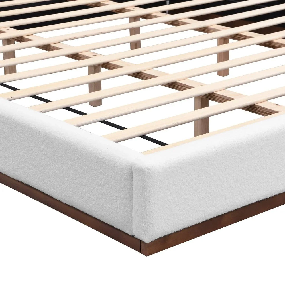 King White Boucle Upholstered Solid Wood Bed Frame