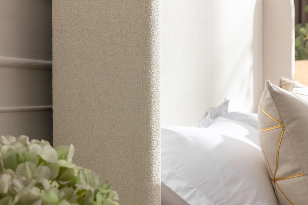 - Premium Ivory Boucle Fabric: Soft, textured upholstery combines comfort with sophisticated style.