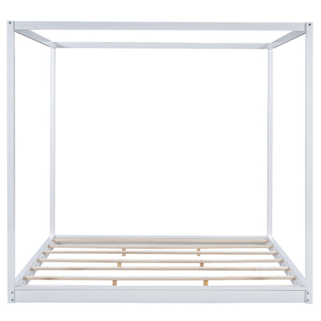 Queen White Pine Wood Canopy Platform Bed with Support Legs