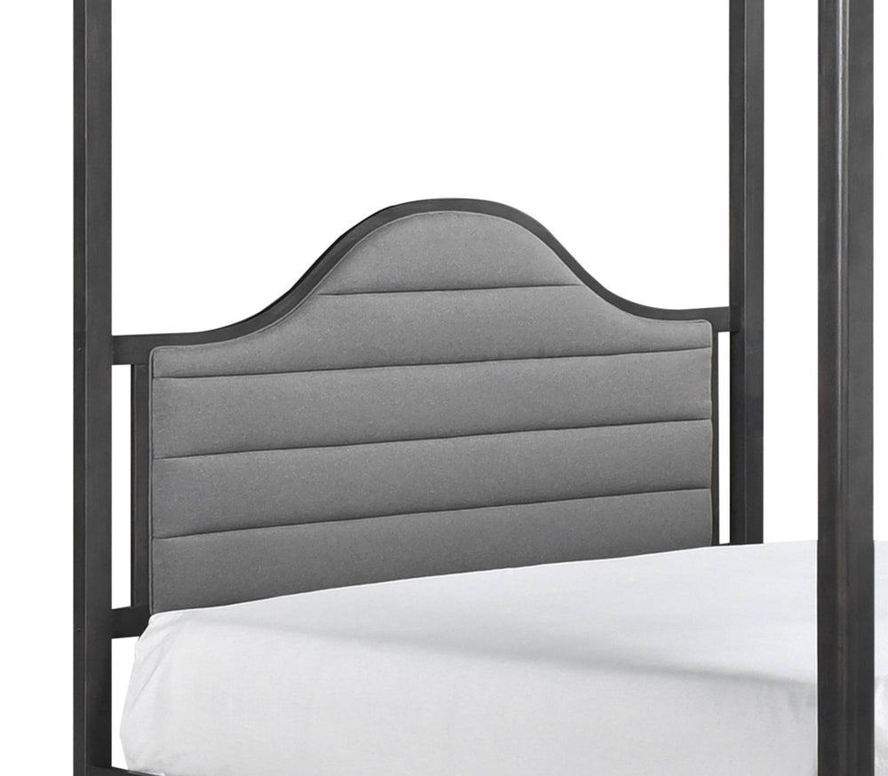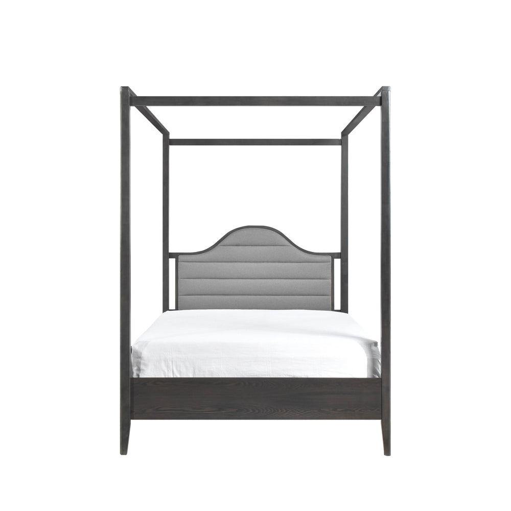 Queen Wood Canopy Bed With Upholstered Headboard
