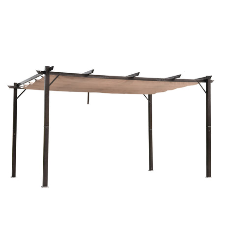 Outdoor Pergola Gazebo Steel Frame Retractable Canopy 12x9 Ft
