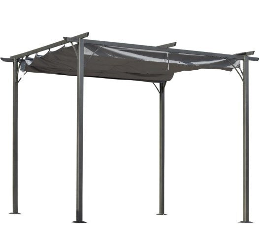 Enjoy the freedom to customize your outdoor space with this sturdy metal patio shade shelter. Featuring a heavy-duty powder-coated steel frame and a durable grey polyester canopy, this pergola is designed to provide reliable sun protection and weather resistance. The retractable canopy lets you easily switch between full sun and shade, adapting to your comfort throughout the day. Treated with UV-resistant PU coating and equipped with water drainage grommets, the canopy withstands outdoor elements while preventing water buildup. Ideal for backyard decks, patios, garden parties, or porch relaxation, this versatile shelter combines classic European style with practical functionality. Assembly is straightforward with included bolts and stakes, allowing you to mount it on soft or hard surfaces. Transform your outdoor living area and elevate your comfort today.