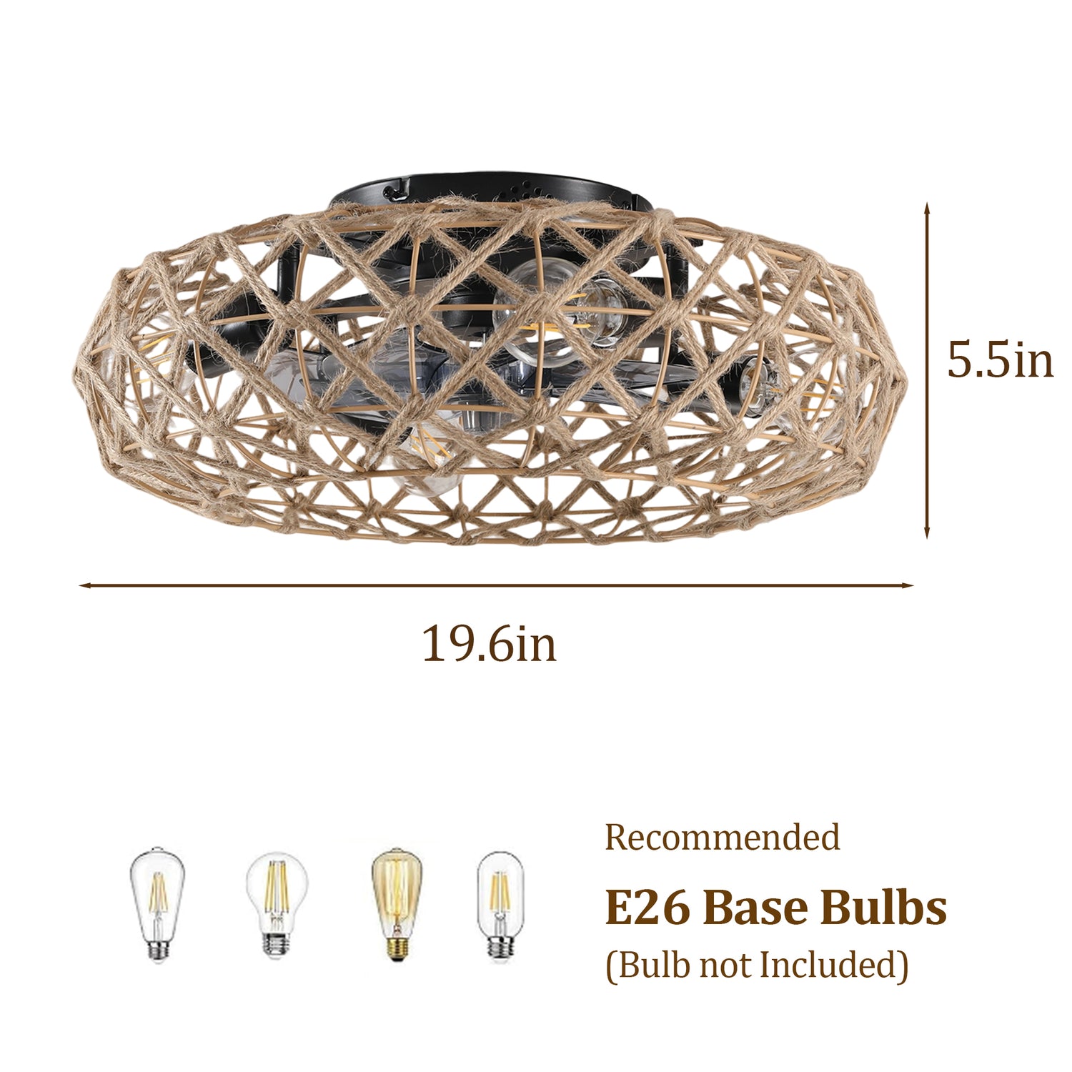 Bring style and comfort together with this ceiling-mounted fan featuring an earthy yellow jute rope design that complements any room. Equipped with a powerful yet ultra-quiet DC motor, it ensures a peaceful environment with noise levels below 35 decibels. The fan’s reversible airflow function helps you stay cool in summer with downward breeze and circulates warm air upward in winter, optimizing energy use year-round. Adjustable dimmable lighting with four bulbs allows you to set the perfect ambiance, controllable via remote for effortless convenience. Crafted from durable metal and rope materials, this fan adds rustic charm while providing reliable durability. Measuring approximately 20 inches wide and just 5.5 inches high, it’s an ideal space-saving fixture that enhances airflow and lighting simultaneously. Elevate your relaxation and style today with this versatile ceiling fan light.