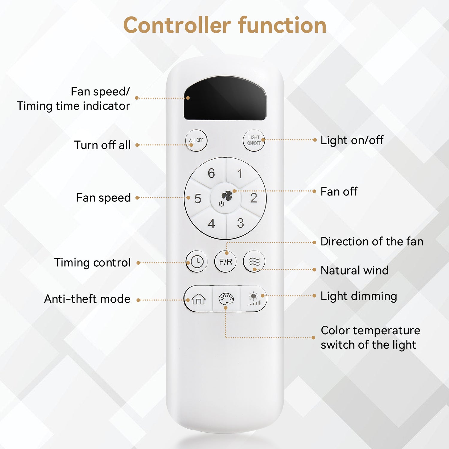 - Remote Control Operation: Easily adjust fan speed, light brightness, and color temperature from anywhere.