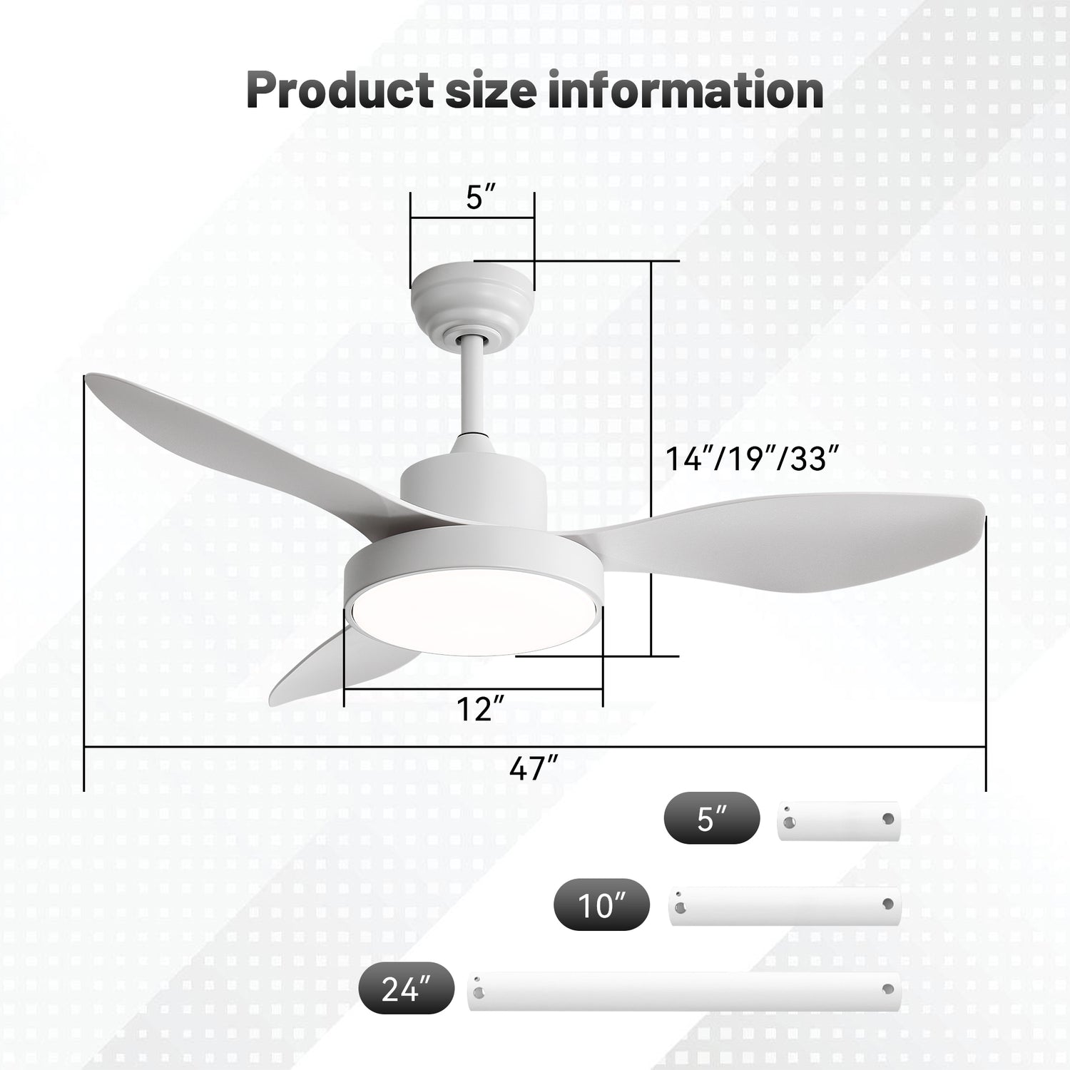 • 47-inch ceiling fan with 3 ABS blades delivers powerful airflow