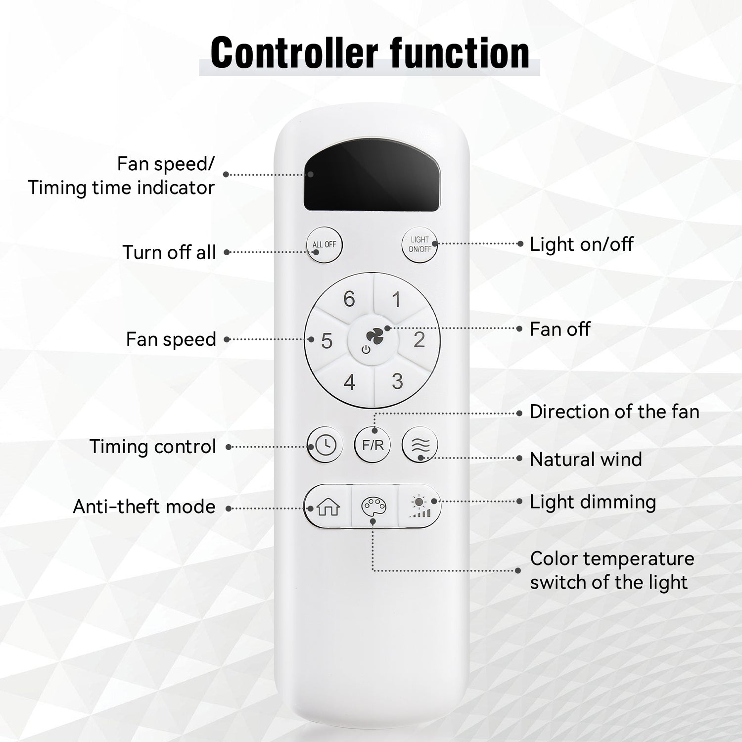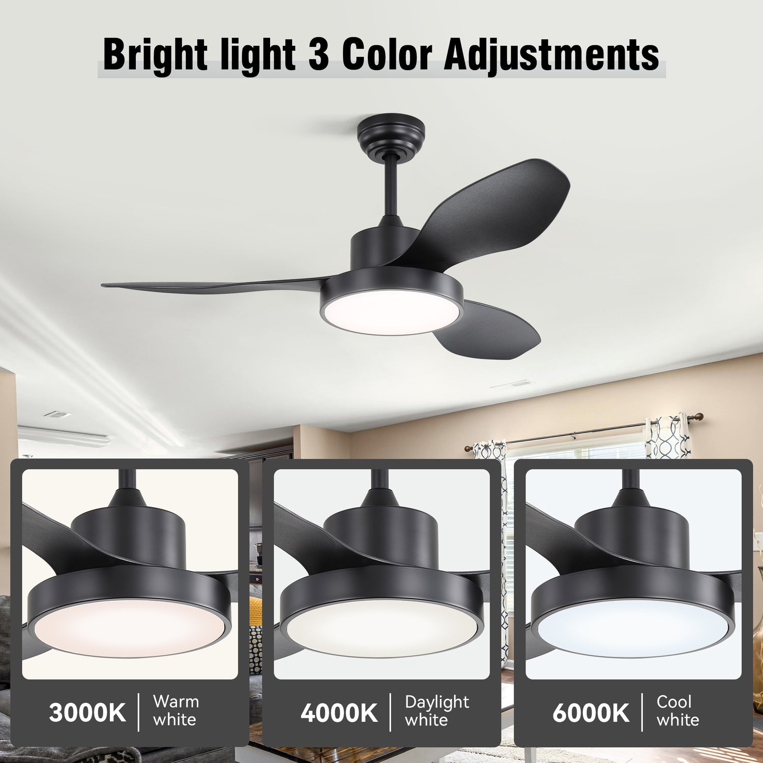 • Remote Control: Easily adjust 6 fan speeds, light brightness, and color temperature from anywhere in the room.