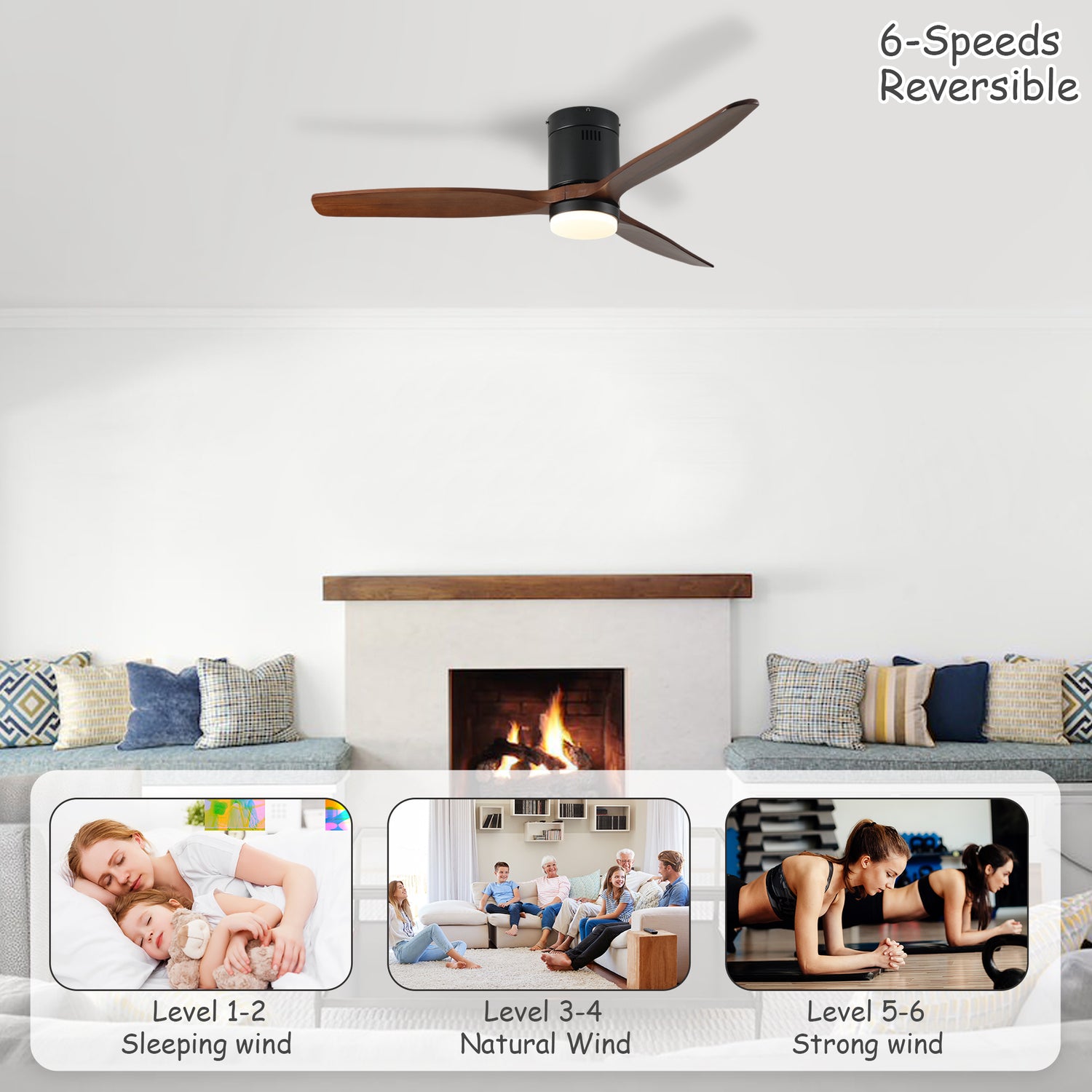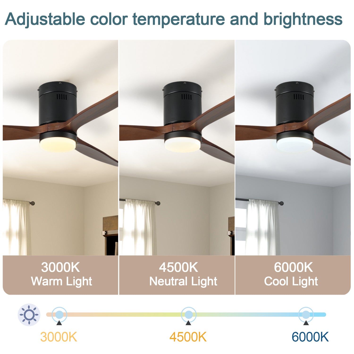 Enhance your living space with this stylish 52-inch ceiling fan featuring three dark walnut solid wood blades that blend classic design with modern functionality. Equipped with a powerful reversible DC motor, it provides cooling airflow during warm months and promotes heat circulation in winter, ensuring optimal comfort every season. The integrated 18W LED light offers adjustable brightness and color temperature from warm 3000K to cool 6000K, all controllable via a convenient remote. Its flush-mount design with matte black housing adds a vintage charm that complements farmhouse, country, or contemporary decor styles. Quiet yet efficient, this fan brings both ambiance and airflow control to your bedroom, dining room, or living room. Elevate your home environment with effortless style and comfort today.