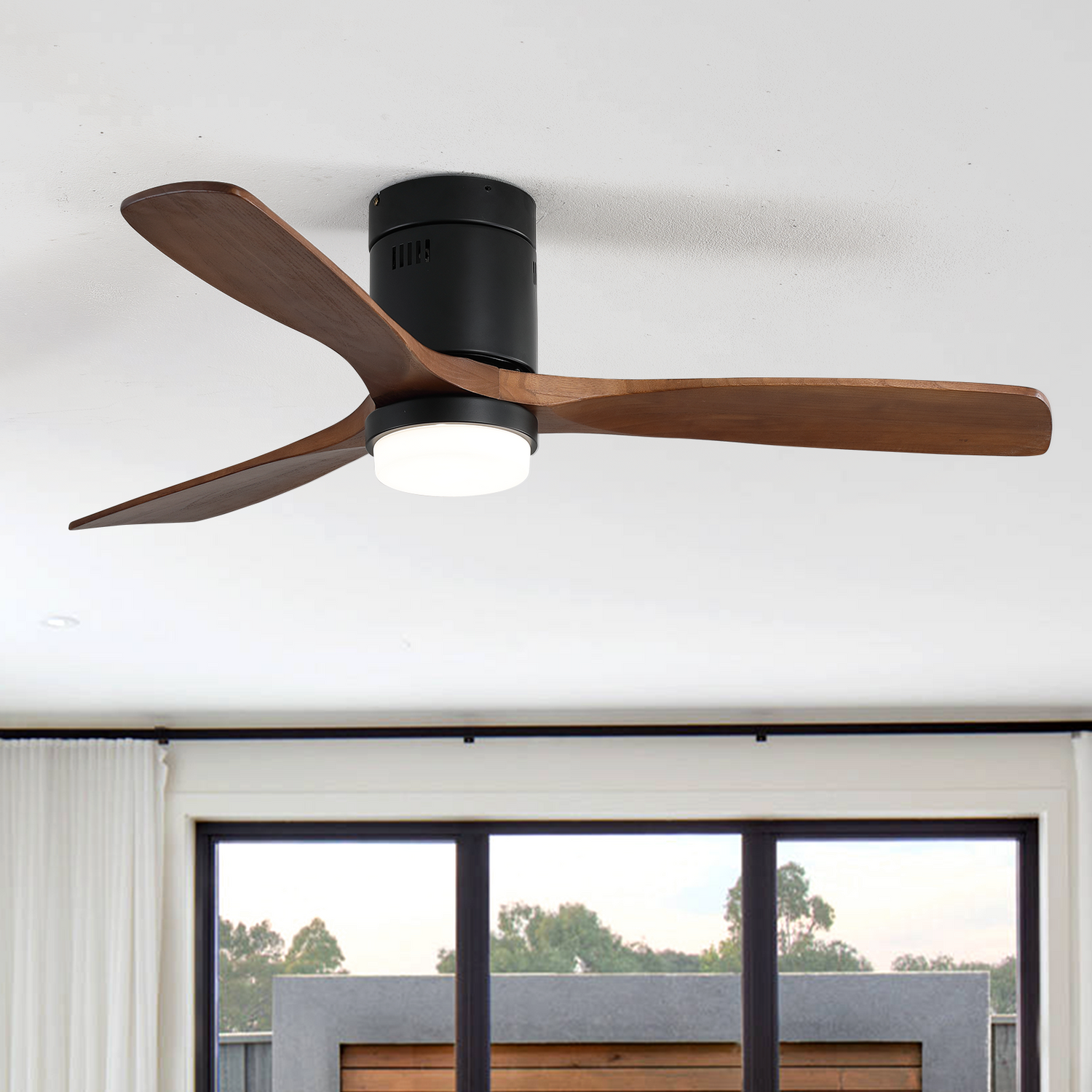 Upgrade your living space with this stylish 52-inch ceiling fan featuring three solid walnut wood blades crafted for smooth, silent operation. The noiseless DC motor delivers powerful yet whisper-quiet airflow under 35 decibels, creating a serene environment perfect for bedrooms, living rooms, or patios. Easily control fan speeds and lighting with the smart remote or app, offering six wind speeds plus timer settings. The reversible blade design ensures optimal air circulation in every season, while the integrated 18W LED light offers adjustable warm, neutral, and cool white tones to brighten and set the ambiance of any room. Its flush mount design seamlessly blends modern style with functionality. Elevate your climate control and lighting today with this versatile ceiling fan.