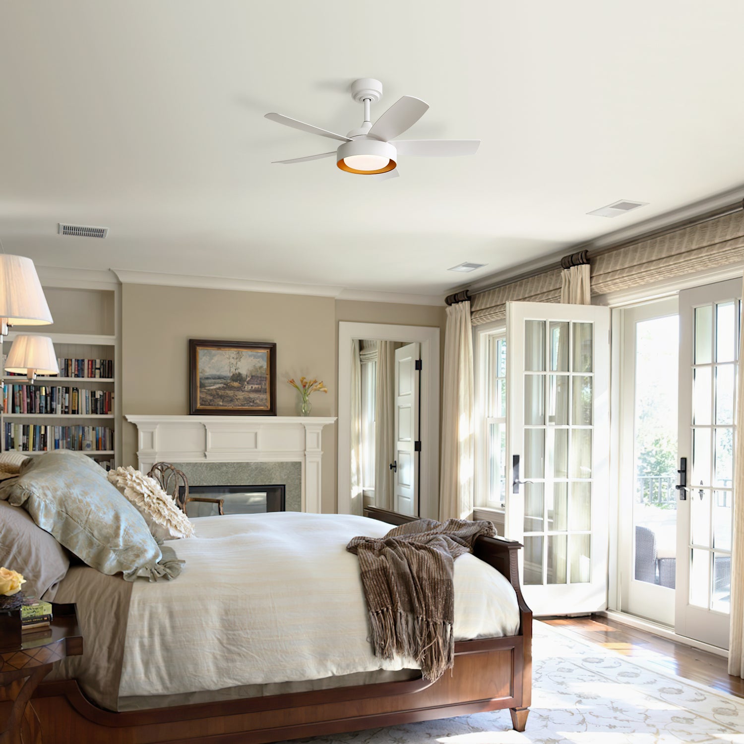Enhance your bedroom’s ambiance and air circulation with this modern 42-inch ceiling fan featuring a powerful yet quiet reversible DC motor. Crafted with durable ABS white blades, it blends style and function perfectly for small to medium-sized rooms. The energy-efficient motor delivers smooth, powerful airflow while operating 65% more efficiently than traditional AC fans, creating a peaceful environment year-round. Adjust lighting effortlessly with the 22W dimmable LED panel, offering three adjustable color temperatures—from warm to cool light—suiting any mood or activity. The included remote control and wall dock make customizing fan speed and light brightness simple and convenient. Whether cooling you in summer or circulating warm air in winter, this fan combines versatility with modern elegance. Elevate your comfort and lighting today.