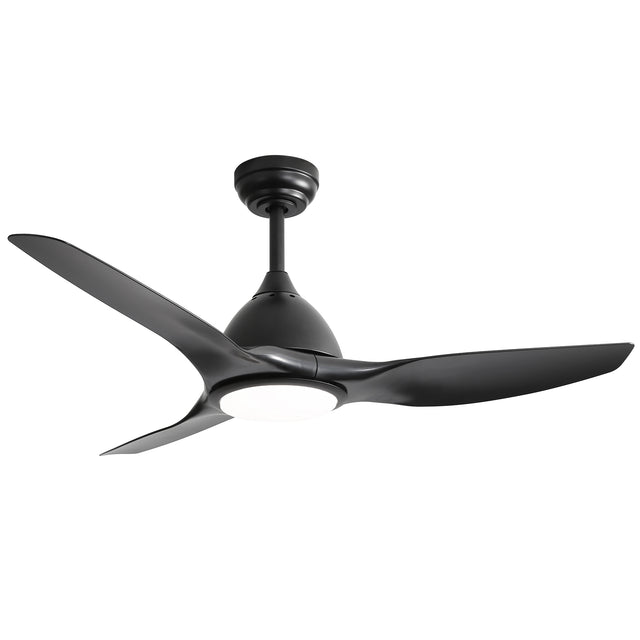52 inch ceiling fan with light features a quiet, energy-efficient DC motor delivering powerful airflow with less than 35 dB noise. Remote-controlled with 6 speeds, timer, reversible blades for year-round comfort, and adjustable 3-color LED lighting, ideal for medium to large indoor and covered outdoor spaces.
