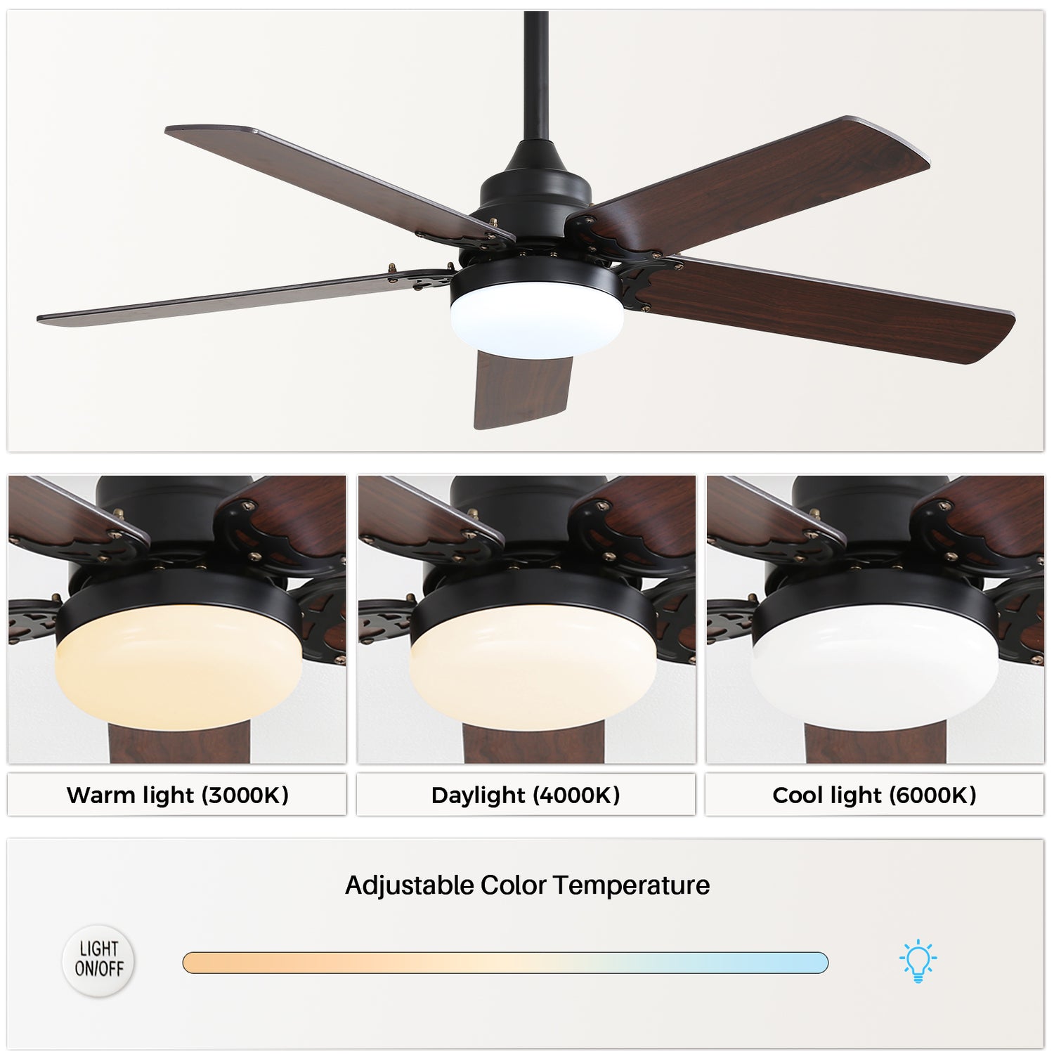 Modern 42 inch ceiling fan features durable MDF dual-color blades, energy-efficient silent DC reversible motor, and adjustable 3-color temperature LED light with remote control. Ideal for living rooms, bedrooms, patios, or gazebos, enhancing year-round air circulation and comfort.