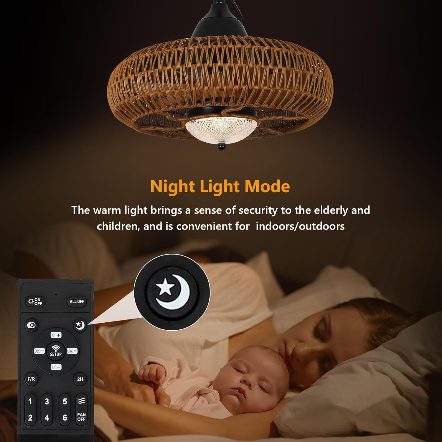 - Remote Control Included: Easily adjust fan speed, light intensity, color modes, reversible airflow, timer, and nightlight.