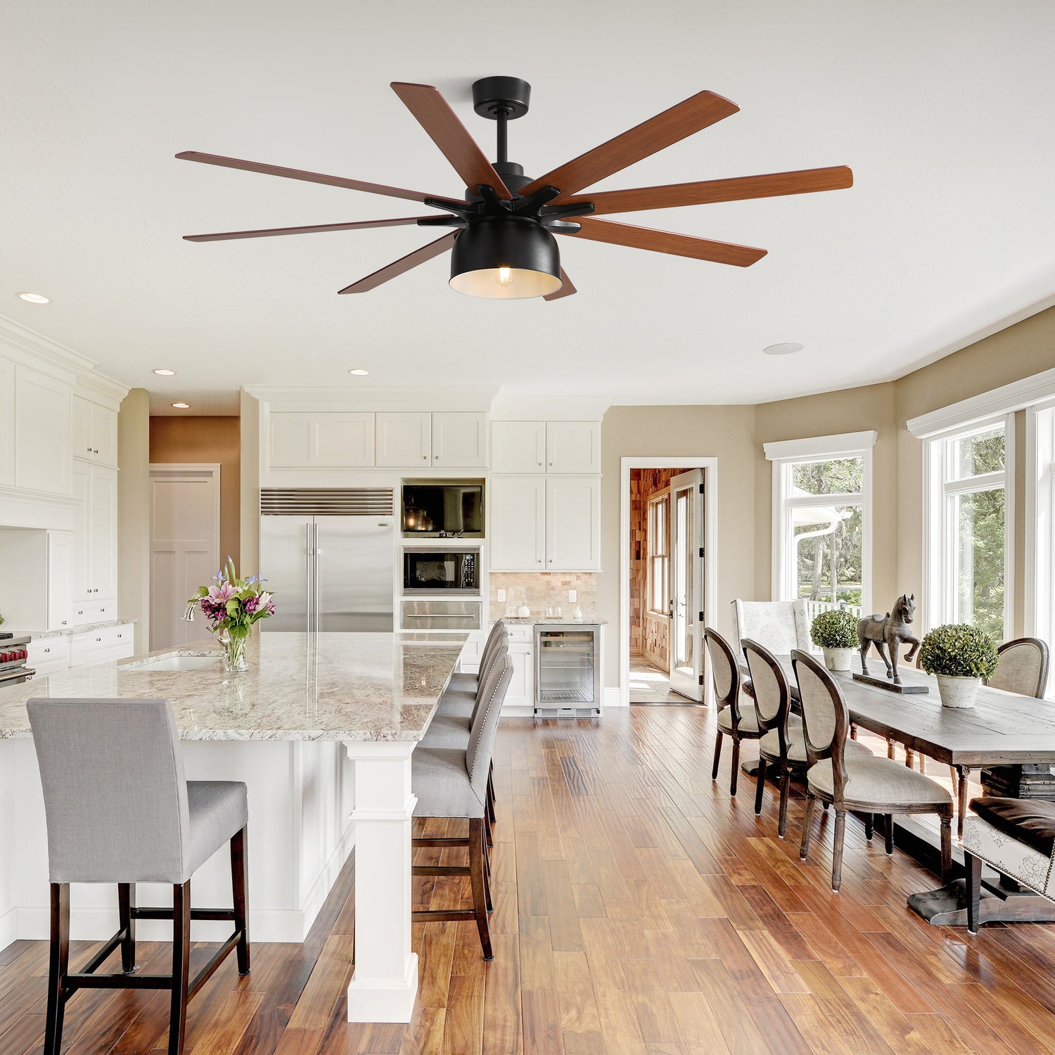 - Three Downrods Included: 5', 10', and 24' for easy installation on various ceilings.