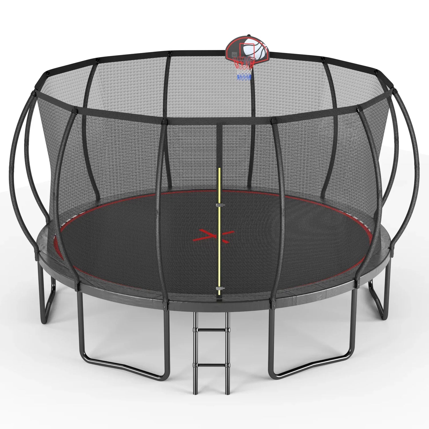 Bring excitement and active play to your backyard with the YC 14FT trampoline, designed for garden and outdoor enjoyment. Featuring a robust galvanized steel frame with a high-dip design, this trampoline offers superior rust resistance and durability to withstand all weather conditions. The unique 6 groups of W-shaped legs provide enhanced stability and safety, ensuring a secure bouncing experience for kids. With 12 curved net poles cushioned by thick foam tubes, there’s extra space for energetic jumps while protecting jumpers from impacts. The reinforced PP jumping mat has been tested to endure intense UV exposure for up to 5,000 hours, maintaining vibrant performance season after season. Complete with a basketball hoop, ball, inflator, and ladder, this trampoline is perfect for family fun and outdoor fitness. Elevate your outdoor playtime and create memorable moments today.