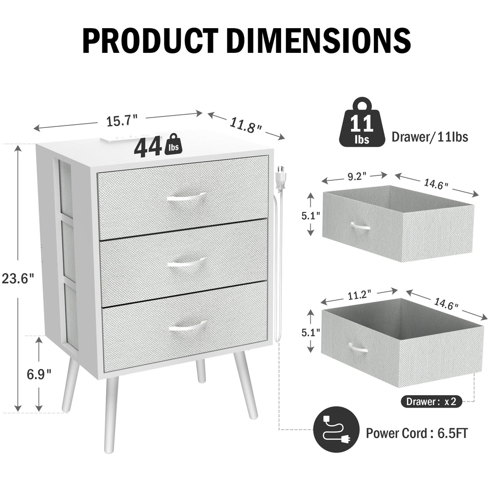 • Three Fabric Drawers: Soft, non-woven storage to keep nighttime essentials organized.
