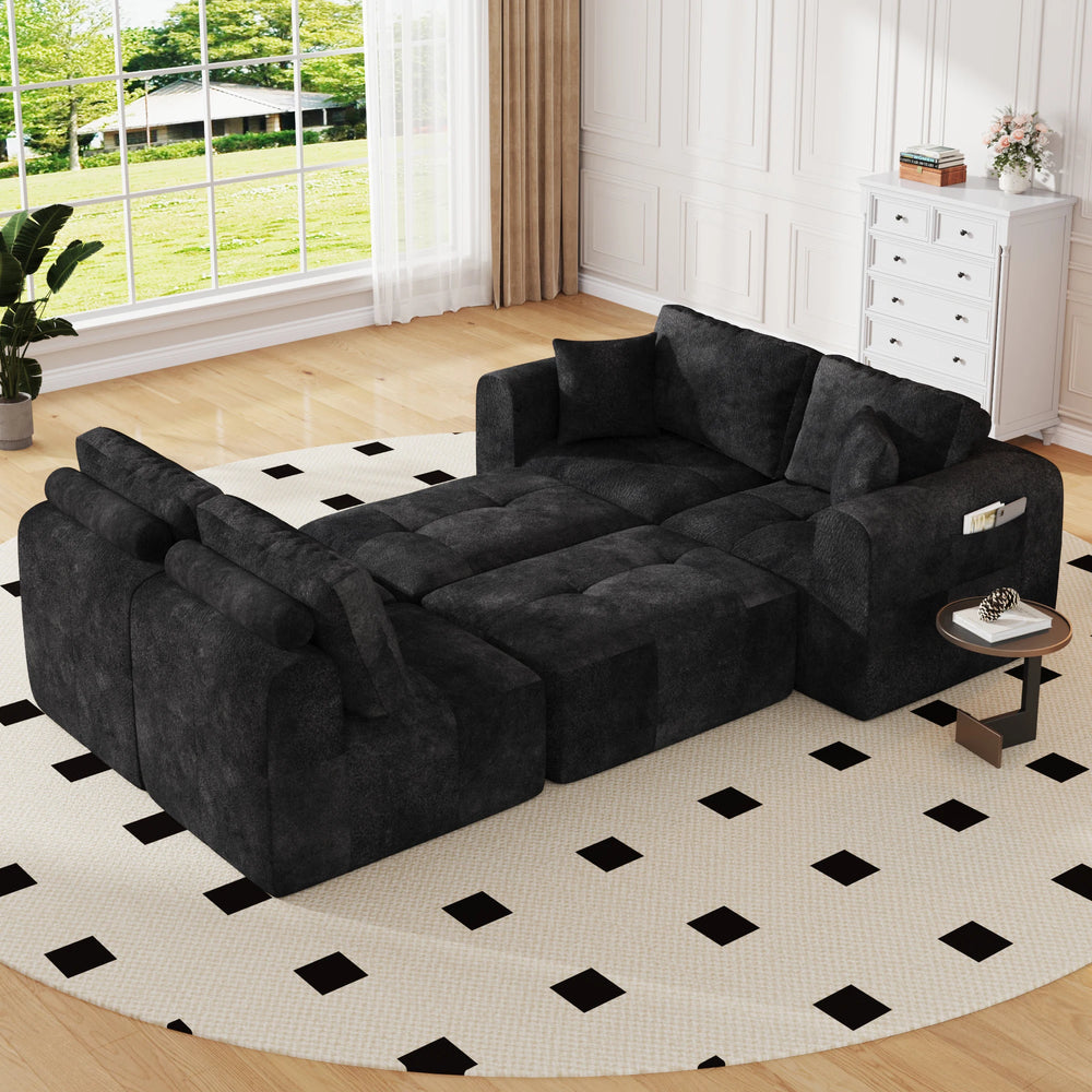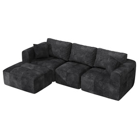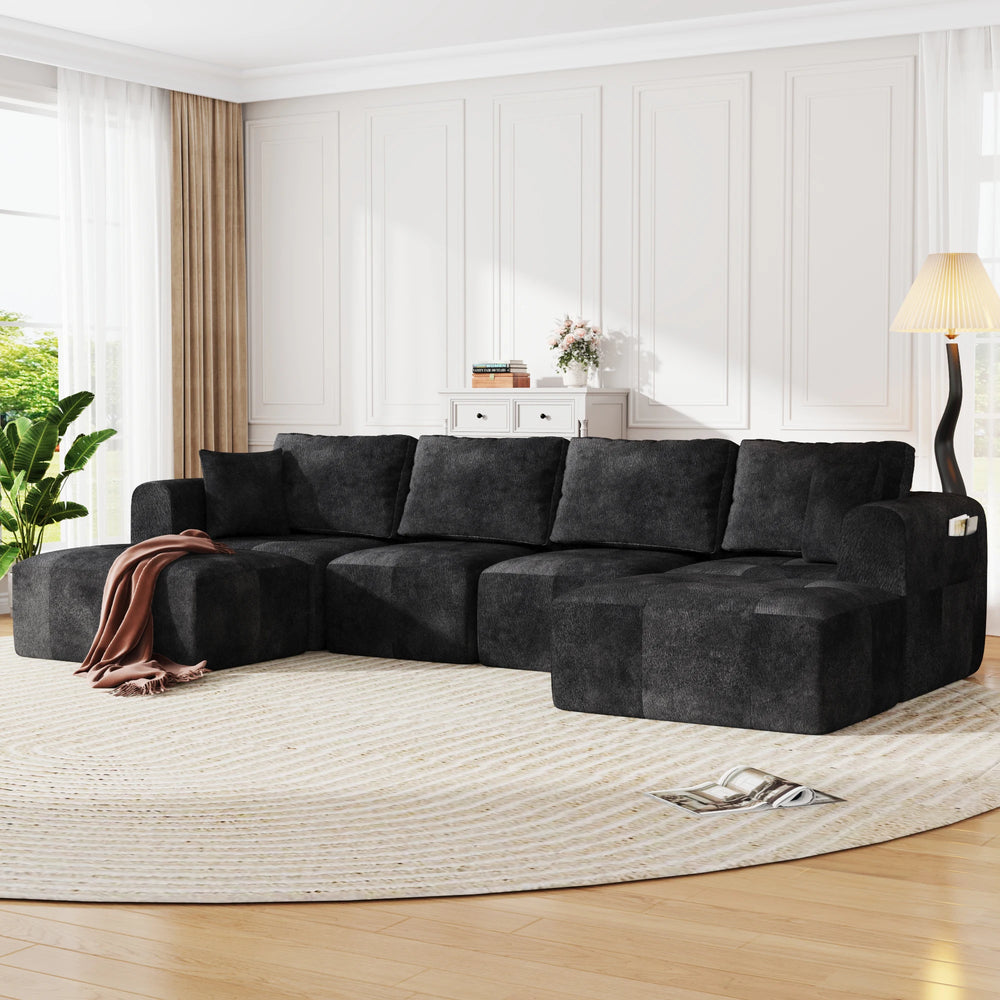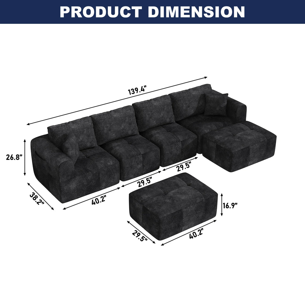 Experience versatile comfort and modern style with this modular sectional sofa featuring a convertible left/right ottoman and oversized chaise. Designed as a blank canvas, this boneless sofa allows you to create your perfect seating arrangement—slide, flip, or park the freestanding ottoman anywhere to suit your space. Crafted with plush chenille upholstery and filled with cloud-soft silk-cotton layers atop high-density firm foam, it delivers exceptional support and luxury seating. Available in two spacious configurations—110" L-shaped and 140" U-shaped—this sectional boasts extra-deep seats and wide 10.6" armrests, ideal for lounging or entertaining. Plus, it arrives ready-to-use with zero assembly, saving you time and effort. Elevate your living room with this sleek, adaptable furniture that blends style with comfort effortlessly.