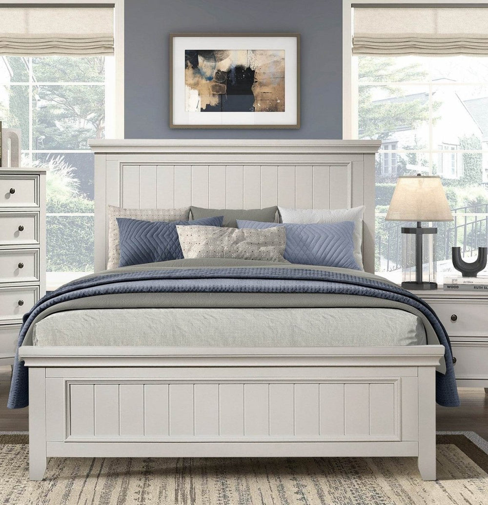 Full White Wood Farmhouse Panel Bed Frame