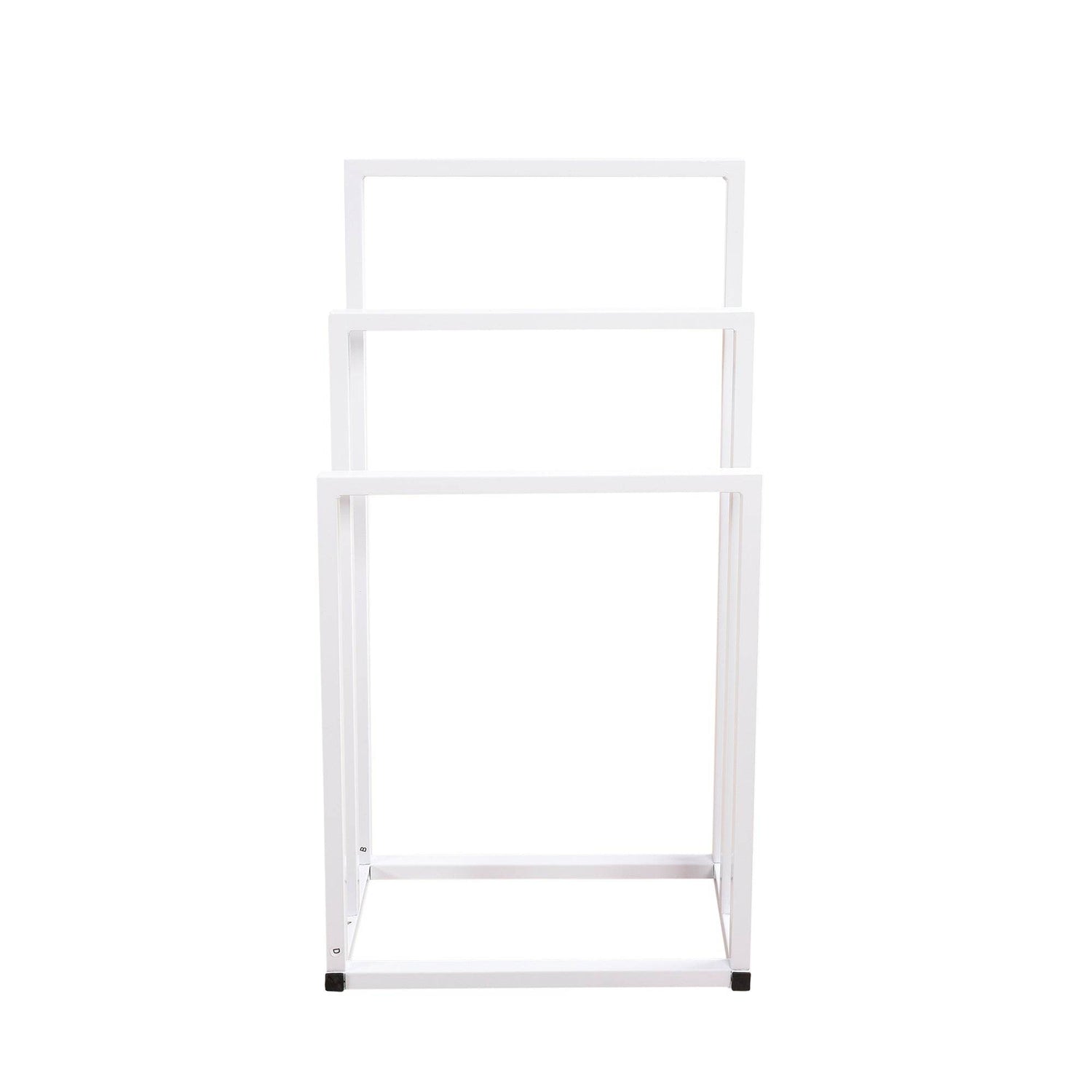 Maximize your bathroom storage with this stylish and practical 3-tier freestanding towel rack. Crafted from durable white metal, it offers a sturdy and rust-resistant solution to keep your towels neatly hung and easily accessible. Its compact design, measuring just 33.86 inches tall, 17.71 inches long, and 8.66 inches wide, fits perfectly in tight spaces without sacrificing capacity. Lightweight and portable, you can effortlessly move it between rooms as needed. The elegant, modern finish and concealed screws create a clean, sophisticated look, enhancing any bathroom, kitchen, or laundry area. Simple to assemble and maintain, this towel holder organizer is ideal for streamlining your daily routine while adding a touch of contemporary style. Elevate your bathroom organization today and enjoy a clutter-free space.