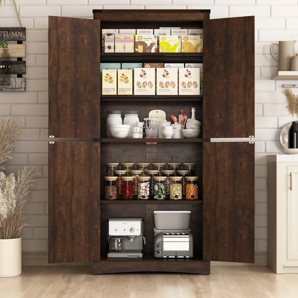 71-Inch Farmhouse Adjustable Shelves Storage Cabinet