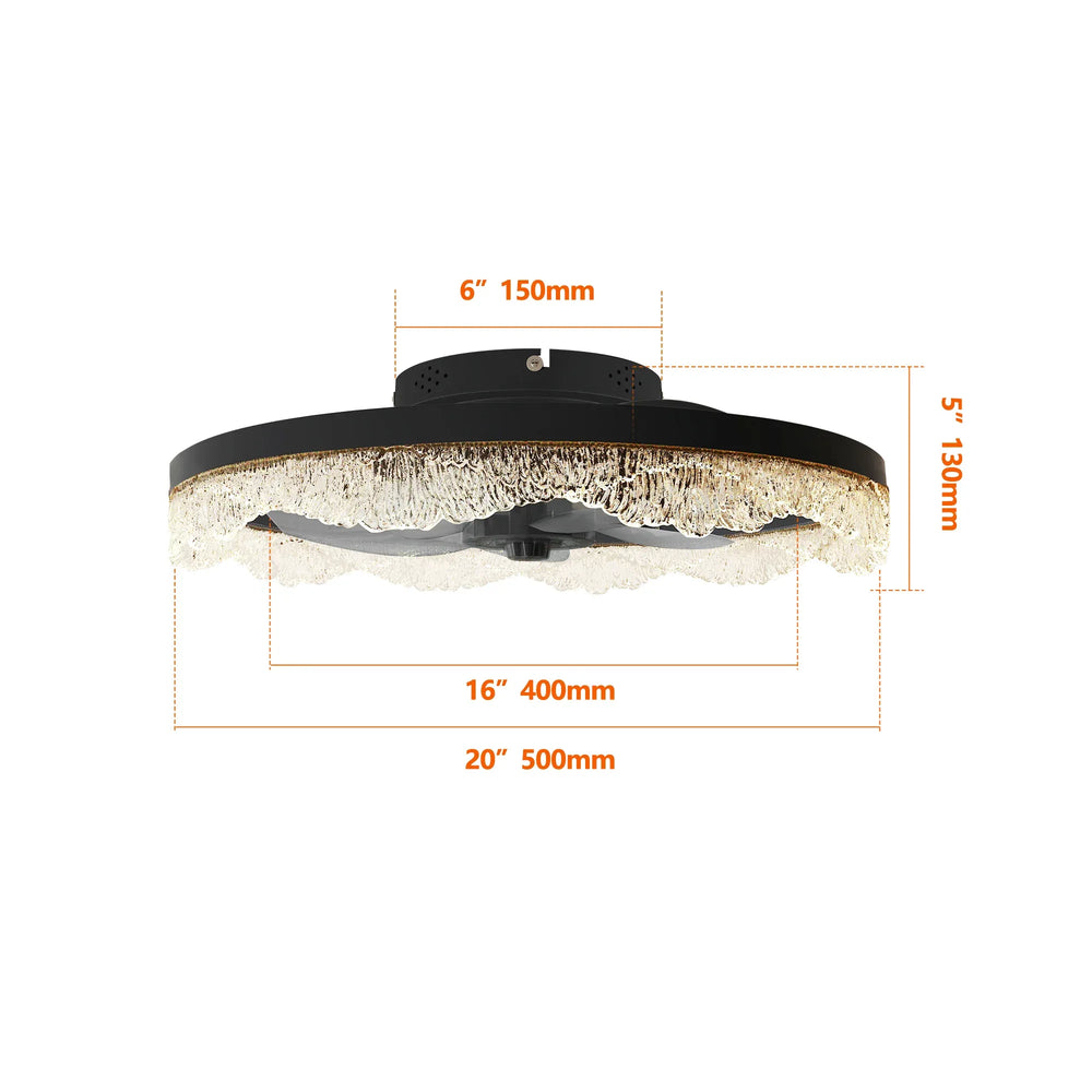 Experience the perfect blend of modern lighting and efficient airflow with this sleek 20-inch decorative LED ceiling fan light. Featuring a flush mount design and a stylish black iron frame, it fits seamlessly into contemporary spaces while saving ceiling height—ideal for rooms with low ceilings. The decorative acrylic ring provides a soft, ambient glow that can be dimmed to suit your mood, illuminating your space with adjustable color temperatures from warm to cool white. Hidden ABS fan blades create a minimalist, clutter-free look while delivering powerful, whisper-quiet airflow. Control fan speed, light brightness, and power effortlessly from the included remote or compatible app. Upgrade your bedroom, living room, or office with this versatile ceiling fan light and elevate your comfort and style today.