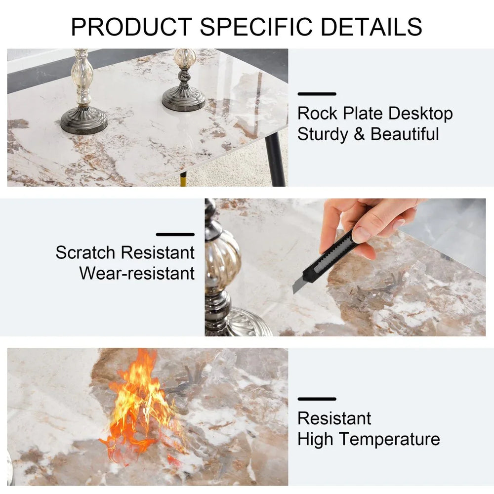 - Durable Sintered Stone Tabletop: Scratch and heat resistant for lasting beauty.