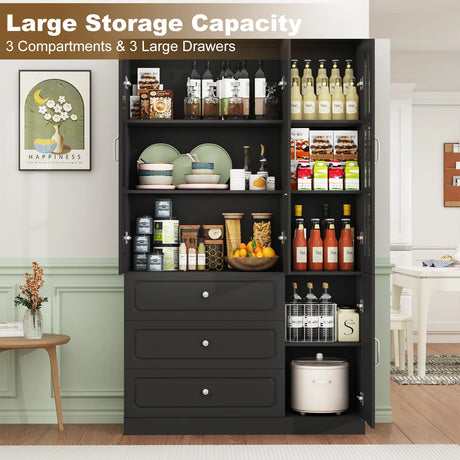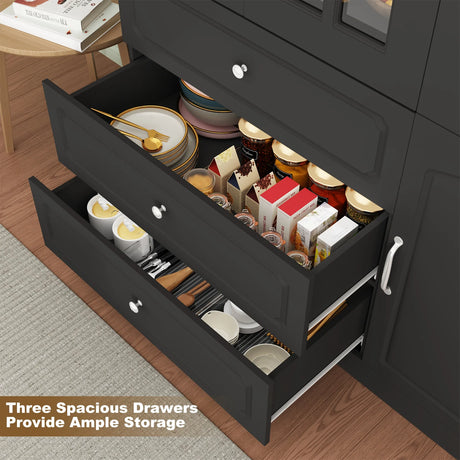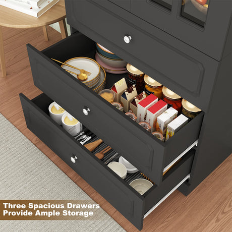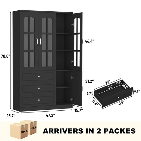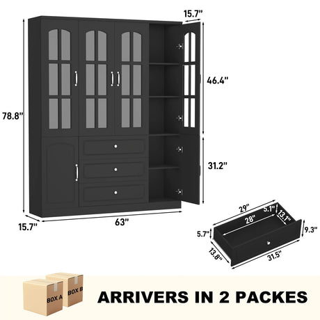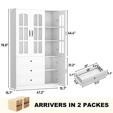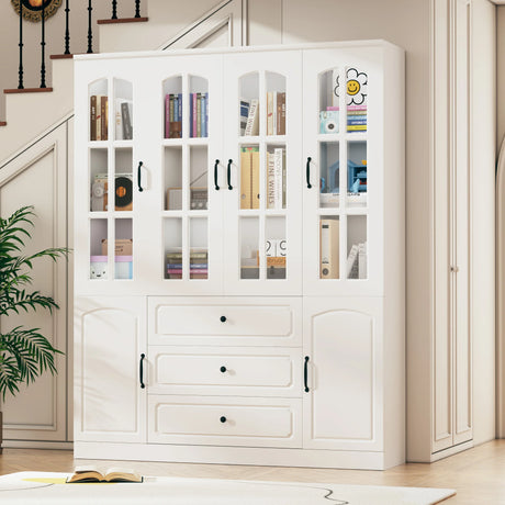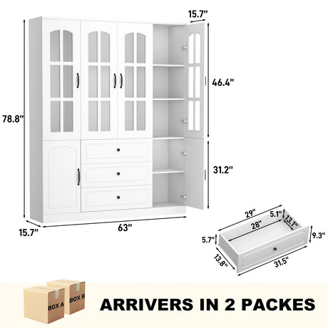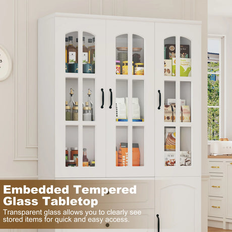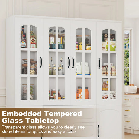Modern 78-Inch White Glass Door Living Room Cabinet