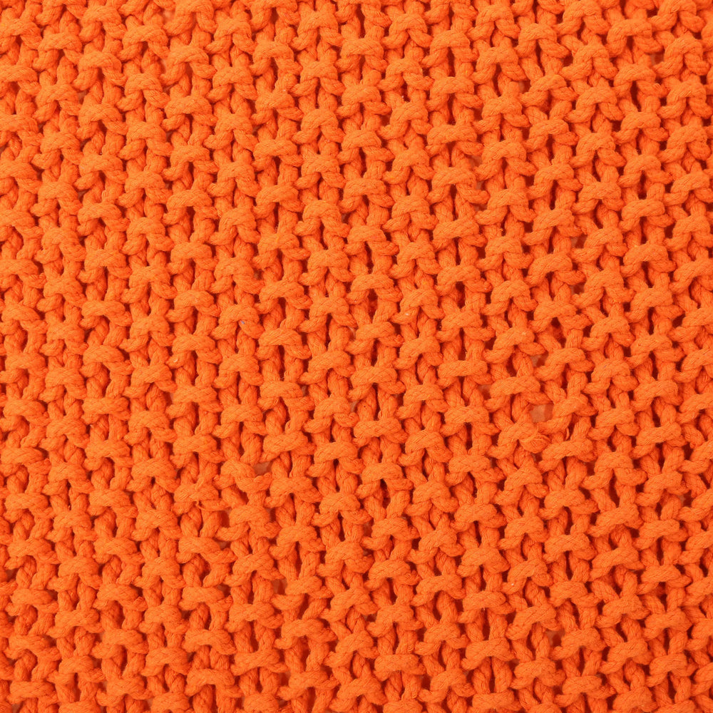 This orange knitted cotton pouf offers versatile comfort as a footrest or extra seat with handcrafted details. Lightweight and easy to store, it fits well in living rooms or bedrooms, enhancing relaxation and casual seating in any space.