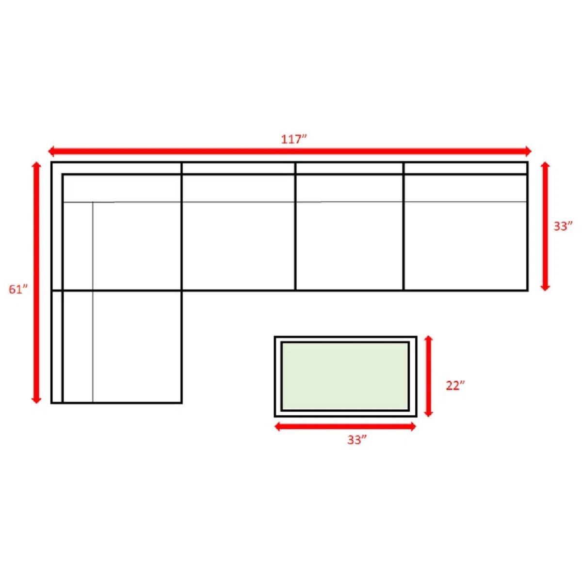 - Dimensions: Sofa 26” H x 117” W x 61” D; Sectional 26” H x 33” W x 33” D; Coffee Table 18” H x 22” W x 33” L