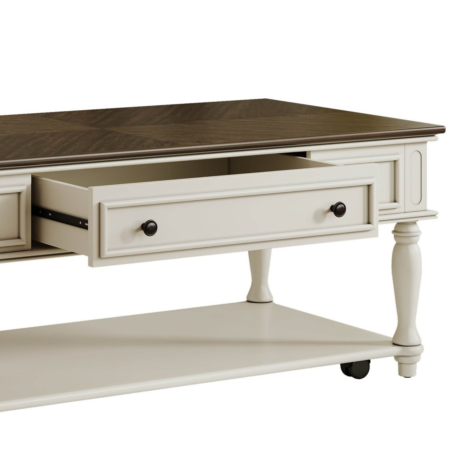 Mid-Century Farmhouse Coffee Table With Drawer Wheels