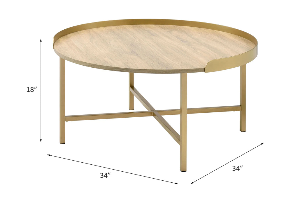 Contemporary Oak And Gold Round Tray Coffee Table