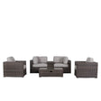 - Complete 6-Piece Set: Loveseat, 2 club chairs, corner chair, coffee table, and 10 cushions included.