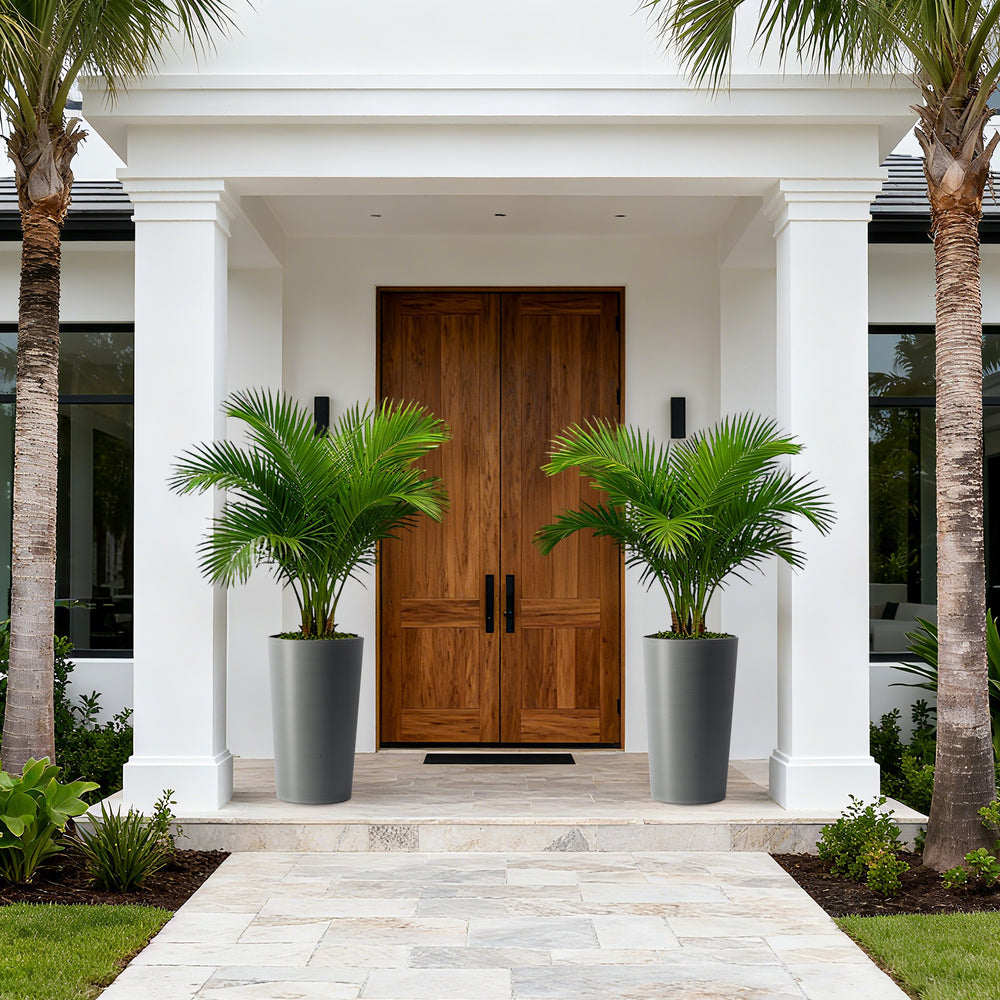 Bring style and practicality to your indoor or outdoor gardening with this 2-pack set of tall planters, each standing 21.7 inches high. Crafted from durable polypropylene, these matte grey planters provide a sleek, contemporary look while offering superior weather resistance and crack protection. Their tall, tapered design supports the healthy root growth of medium to large plants, making them ideal for flowers, trees, or shrubs on patios, balconies, or inside your home. Lightweight yet sturdy, these planters resist shattering and aging, ensuring long-lasting beauty and functionality. Perfect for home gardeners and decorators alike, this set delivers a cost-effective solution to refresh your green space. Elevate your planting experience and add a modern touch to any setting today.