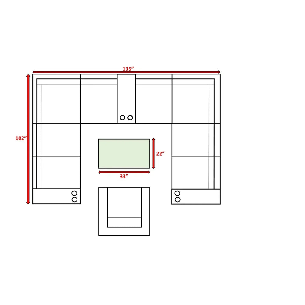 - 13 Modular Pieces: Includes 13 sectional seats, 1 lounge chair, 1 tempered glass coffee table, and 20 cushions for flexible layouts