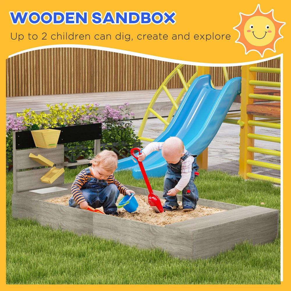 Bring outdoor fun to your backyard with this durable wooden sandbox designed for children aged 3 to 7 years. Crafted from solid fir wood with a natural gray finish, it offers a rustic yet sturdy play space that inspires imagination. The unique kitchen design includes a pretend sink and two stovetops, merging creative role-play with classic sand play. Its bottomless construction paired with a breathable non-woven fabric liner ensures excellent drainage and easy sand depth adjustment, keeping play clean and fresh. Spacious two-seater layout invites friends to join in for shared fun and social development. With overall dimensions of 60.6 inches long, 31.5 inches wide, and 23.6 inches high, this sandbox holds up to 250 lbs of sand and supports children up to 220 lbs. Easy to assemble and built to last, it’s the perfect outdoor activity center to spark hours of imaginative play. Elevate your child’s playtime with this engaging and practical sandbox today.