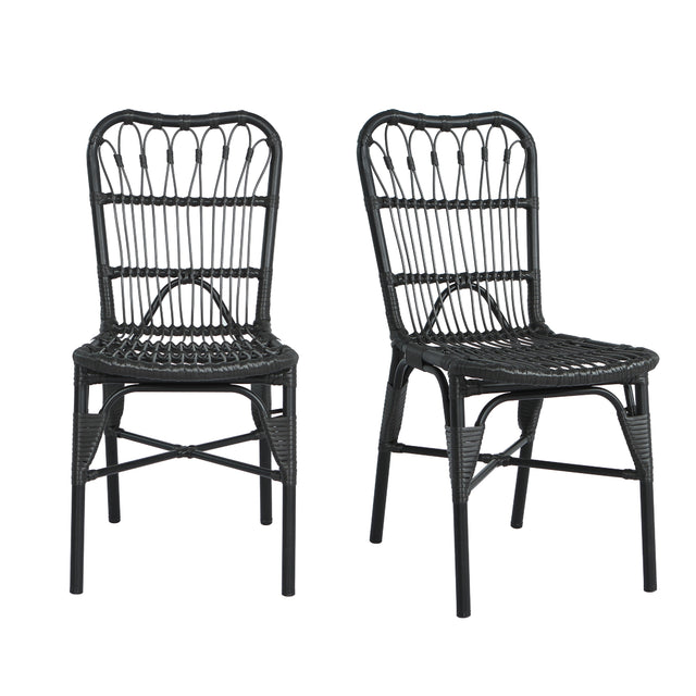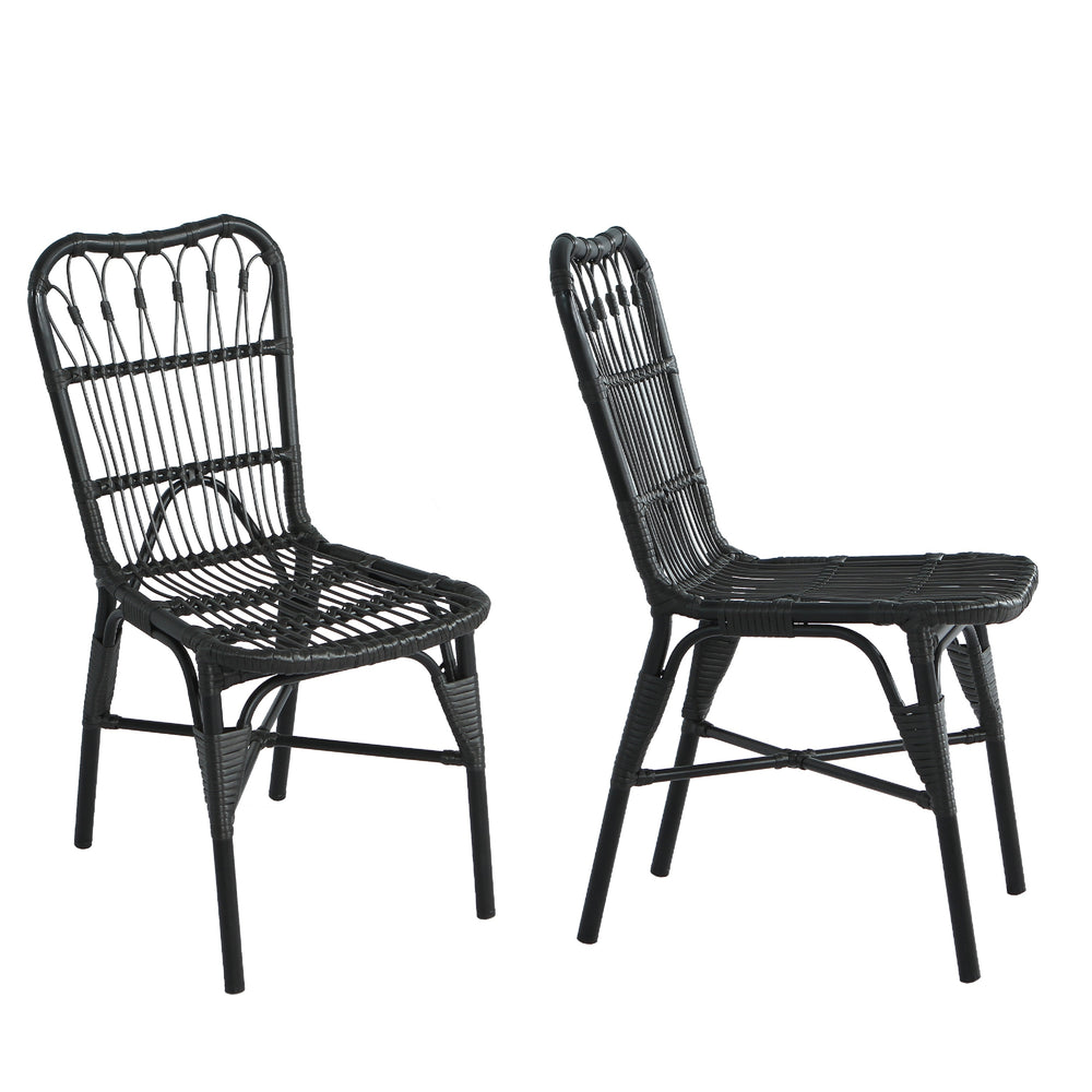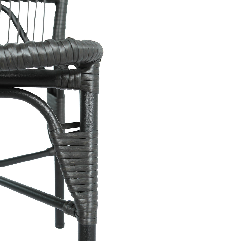 Upgrade your outdoor living space with this set of 2 modern patio dining chairs, featuring hand-woven grey PE rattan over a sturdy black iron frame. Designed to withstand the elements, these chairs combine durable materials with sleek style to enhance your garden, patio, or balcony. With a robust 400-pound weight capacity and UV-resistant iron frames, they promise lasting support and weather resistance, perfect for relaxing or entertaining outdoors. Delivered fully assembled, these lightweight chairs save you time while adding elegant comfort to your outdoor setting. Easy to clean and maintain, they keep their refined look with minimal effort. Elevate your outdoor dining experience today with these versatile and durable patio chairs.