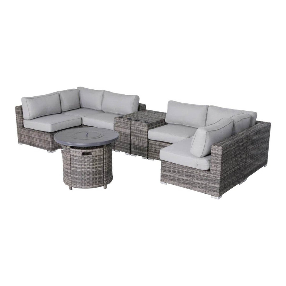9-Piece Outdoor Sectional Sofa Set With Cushions And Fire Pit - Omega Lifestyles